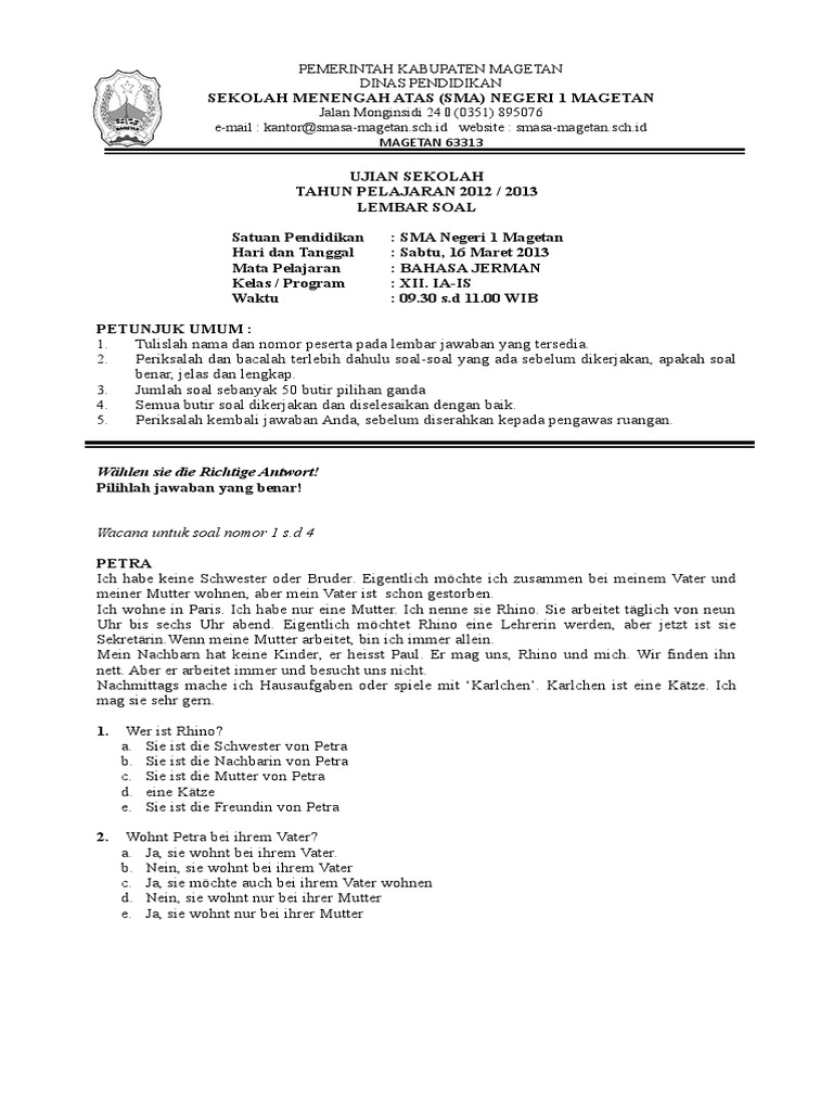 Soal Pilihan Ganda Bahasa Jerman Kelas Xii : Contoh Soal Bahasa Jerman Pilihan Ganda Beserta Jawabannya Dapatkan Contoh / Agar kegiatan tersebut berjalan dengan tertib, siswa kelas x dan xi masuk sekolah pukul 10.00 wib.